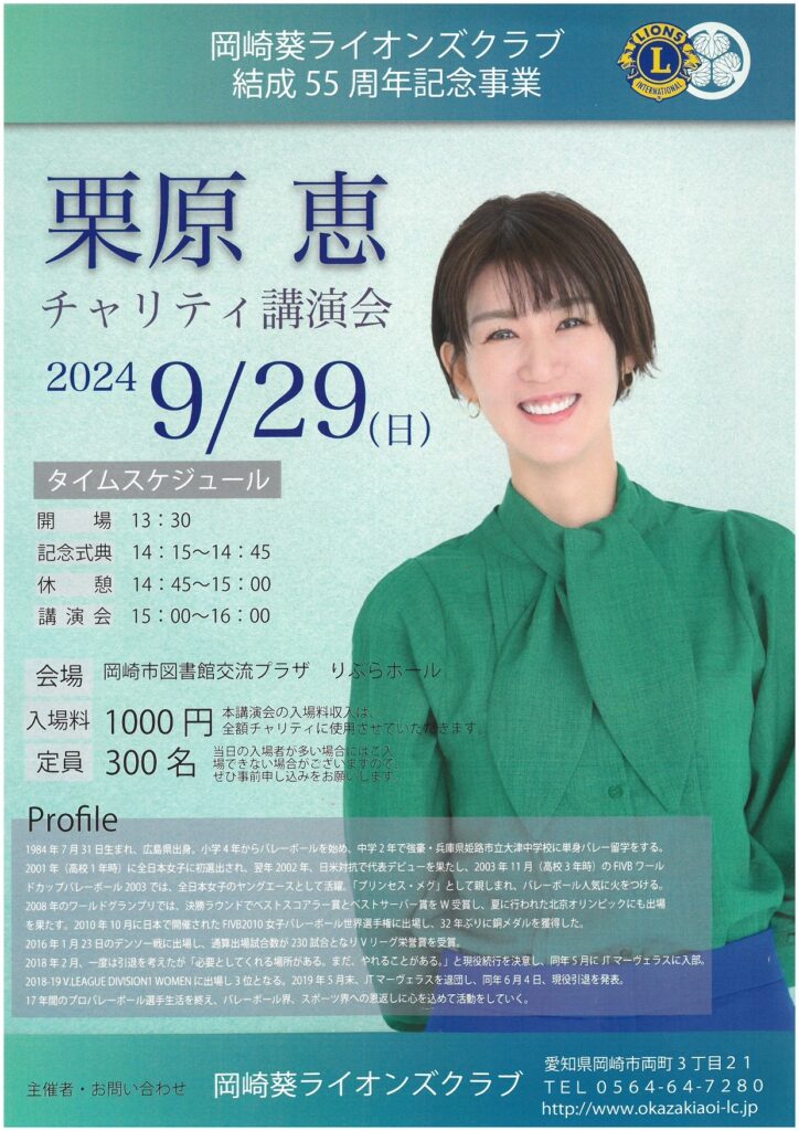 【開催終了 ご協力ありがとうございました。】栗原恵チャリティ講演会 2024年9月29日 proof-editor 日時: 2024年9月29日(日)13:30 開場場所: 岡崎市図書館交流プラザ りぶらホール