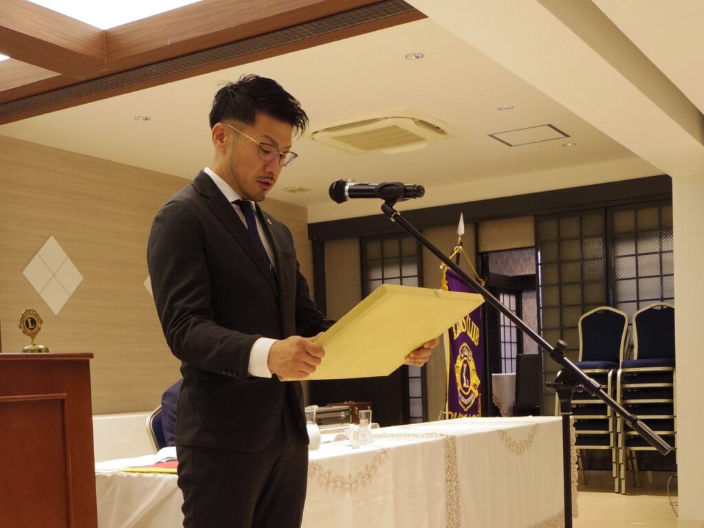 第1310回例会 2024年9月26日 proof-editor 9月26日(木)12時30分~13時45分定例会場にて第1310回例会が開催されました。新入会員 L.稲吉克哉の入会式が行われました。入会おめでとうございます。