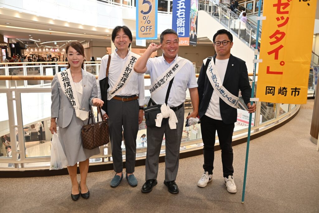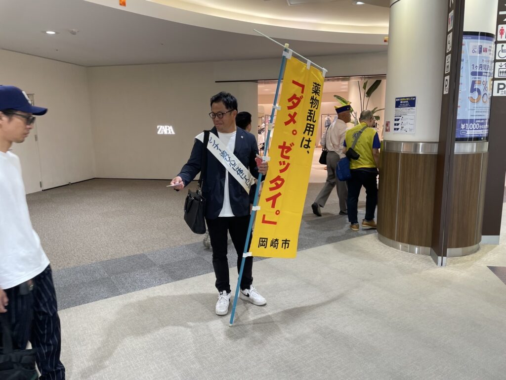「ダメ。ゼッタイ。」普及運動街頭キャンペーン 2025年7月30日 proof-editor 7月30日(水)13時45分~15時00分青少年の薬物乱用防止活動として、「ダメ。ゼッタイ」普及運動街頭キャンペーンをイオンモール岡崎3Fにて行いました。担当は、市民・社会奉仕委員会です。