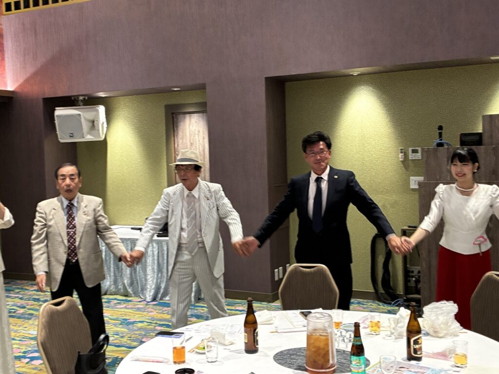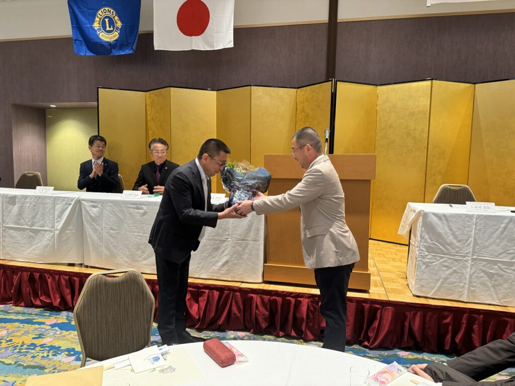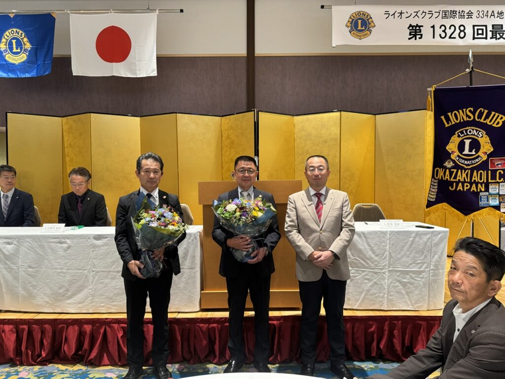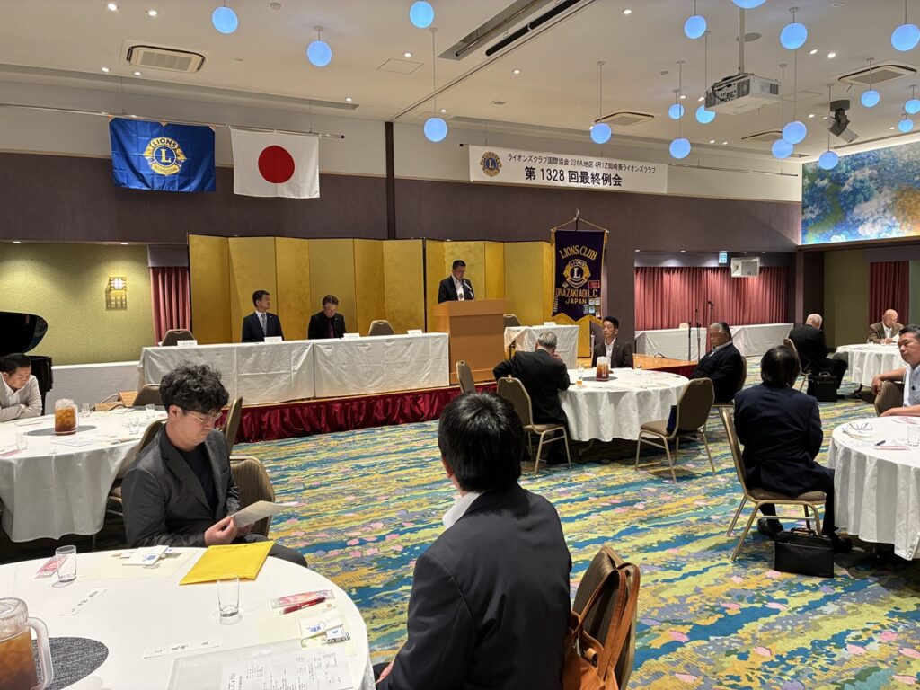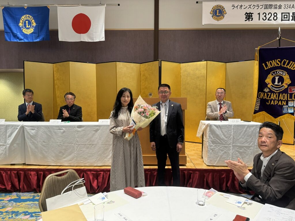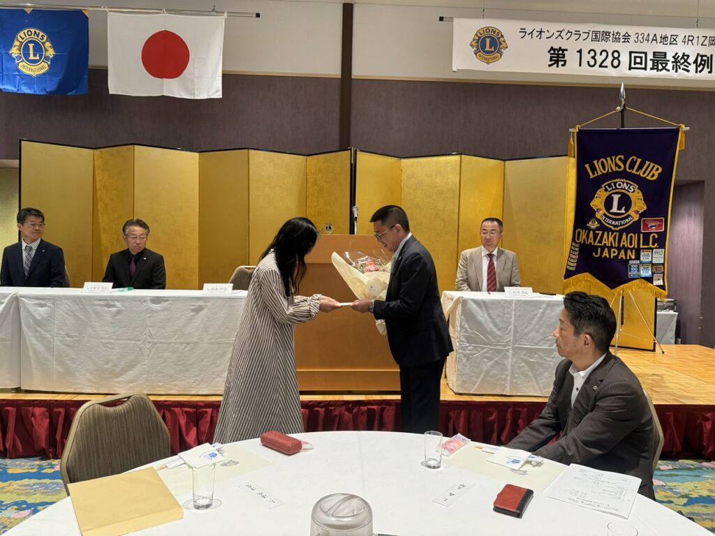 第1328回例会(最終例会) 2025年6月29日 proof-editor 6月27日(金)17時30分~20時30分岡崎ニューグランドホテルにおいて、第1328回例会(最終例会)が行われました。2024年度最後の例会となります。会長・幹事に感謝の花束贈呈、事務局員へ記念品の贈呈が行われました。