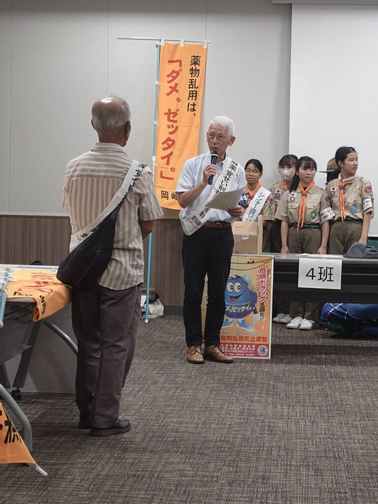 薬物乱用防止「ダメ。ゼッタイ。」普及運動街頭キャンペーンがイオンモール岡崎3Fイオンホールにて開催され、会長L.清水洋志、第2副会長L.李忠宇、市民・社会奉仕委員長L.前田豊、市民・社会奉仕副委員長L.市川晶章、幹事L.柴田輝彦が参加しました。