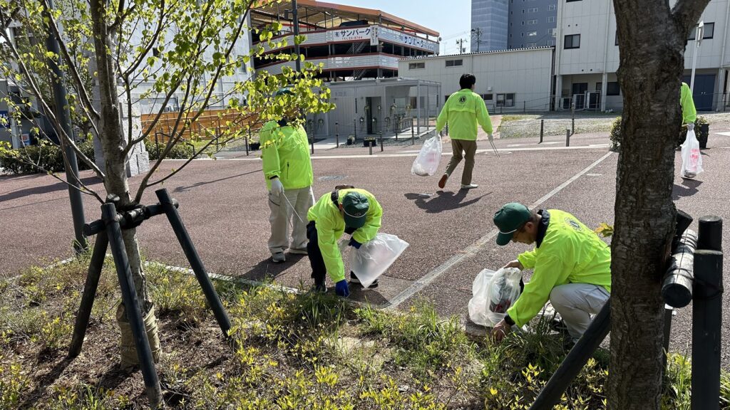 軽い運動で健康促進を期待しつつ仲間と一緒に街をきれいにしました。