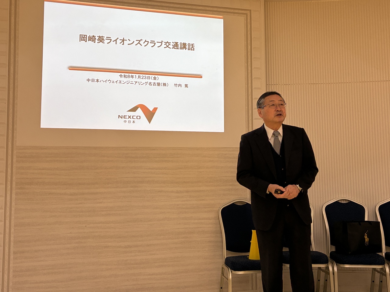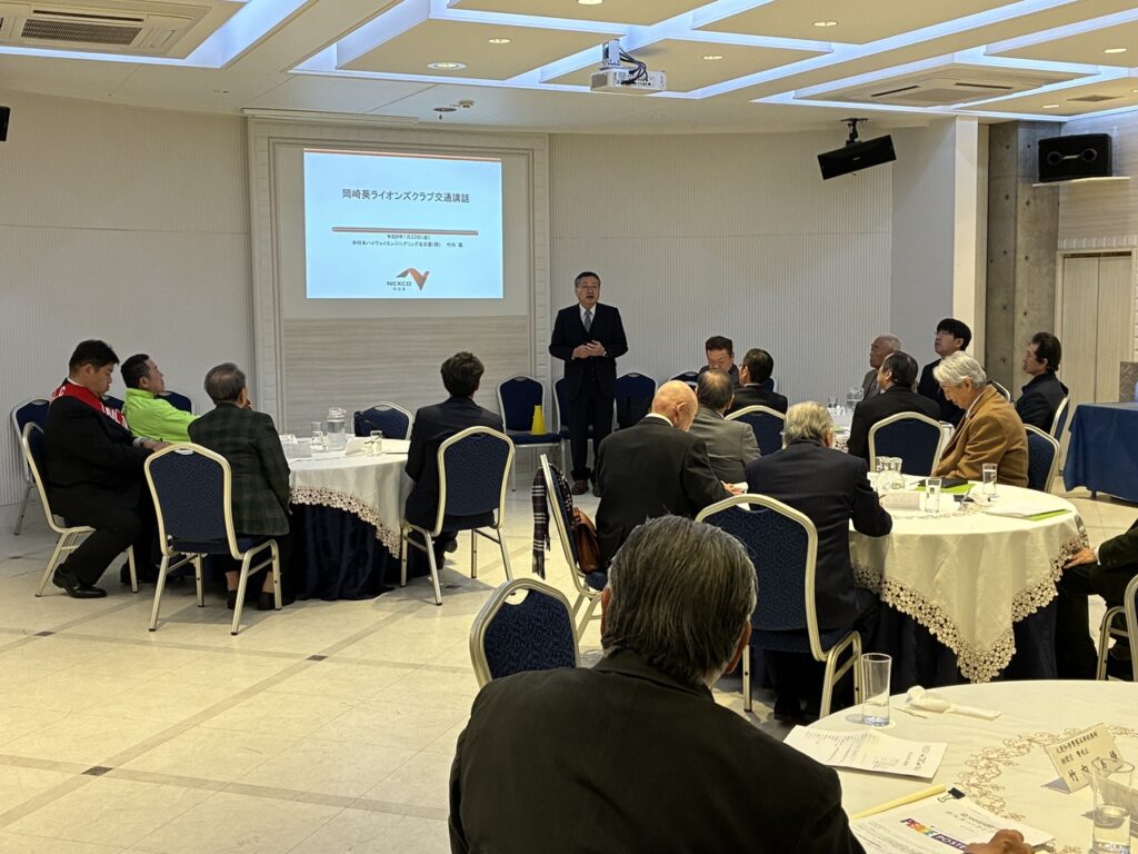 第1342回例会 2026年1月23日 岡崎葵ライオンズクラブ管理者 1月23日(金)12時00分~13時45分定例会場にて第1342回例会が開催されました。この例会では、元愛知警察本部総務部 聴聞官 警視正 竹内篤様をお招きして、卓話「事故防止の裏側」を講演いただき、改めて交通安全について勉強しました。