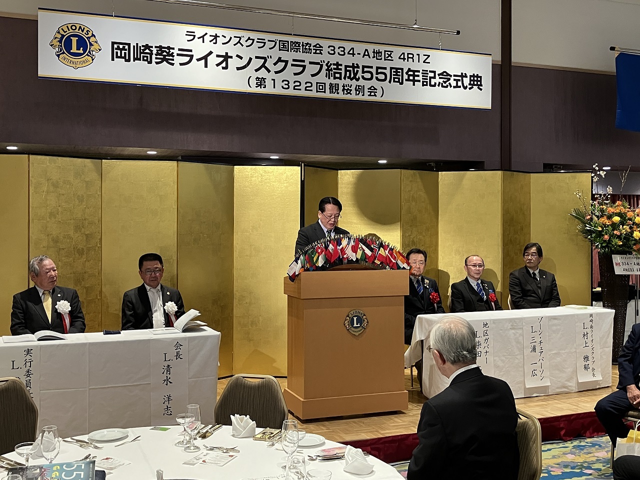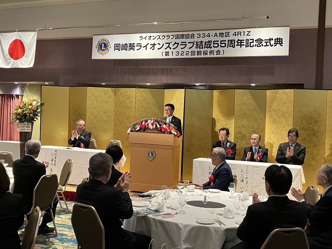 結成55周年記念式典(第1322回観桜例会) 2025年3月22日 proof-editor 3月22日(土)17時00分~20時30分岡崎ニューグランドホテルにて結成55周年記念式典(第1322回例会)が開催されました。多数のご来賓の方にお越しいただき、盛大に執り行うことができました。